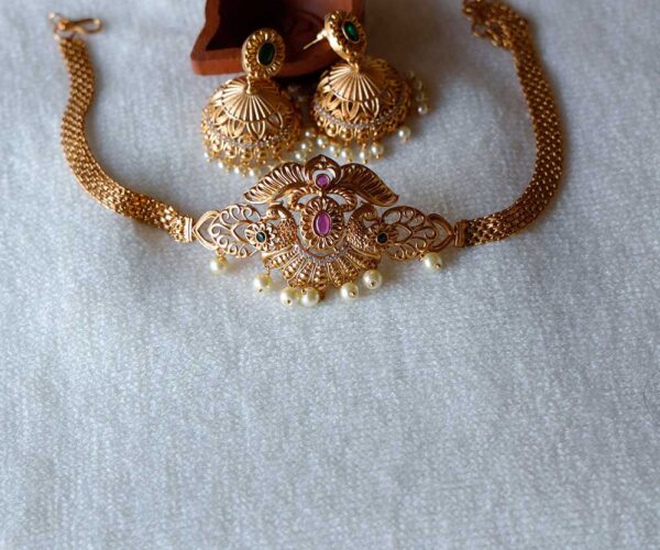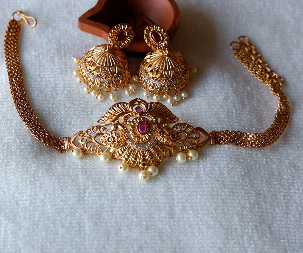 Elevate your style with our trendy choker adorned with lightweight jhumkas. Perfect blend of tradition and chic for every occasion. Shop now!