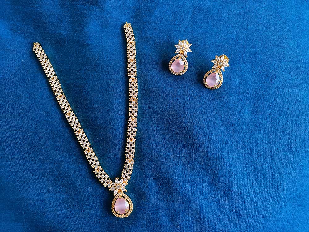 Elevate your party look with our exquisite Floral Drop AD Necklace. Dazzling AD stones in a floral arrangement, set in radiant gold polish, make this necklace a statement of timeless elegance. Perfect for adding a touch of glamour to any occasion.